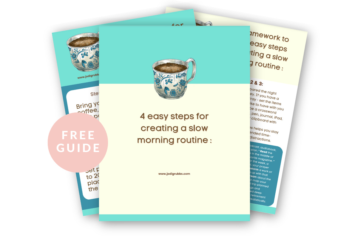 If you’d like a more soul-refreshing morning routine, I hope you’ll check out Jodi Grubb’s free guide! I love how she’s put together this simple framework to follow for a more peaceful routine. (I always look forward to reading Jodi’s Slow Living newsletter, and I know you will too!) Click here to get the free guide!